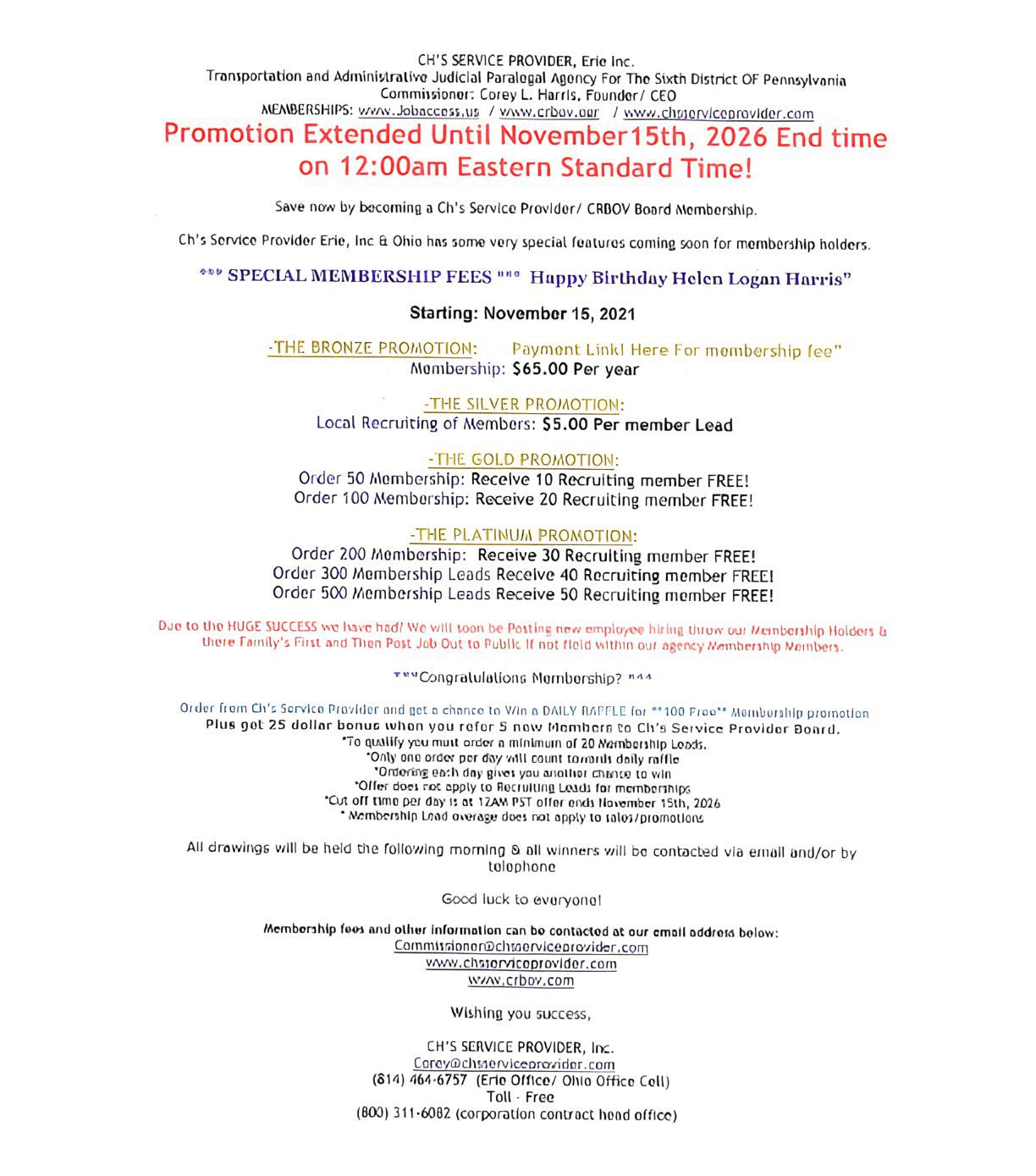 CH'S SERVICE PROVIDER ERIE INC CORPORATION